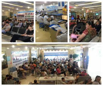 康复的白癜风患者带着感谢锦旗与医院医护人员的合影