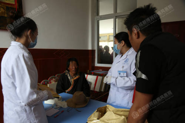 老人名叫大罗布,今年65岁,藏族,是当地的游牧民。义诊天,老人独自一人来到义诊室,成都博润白癜风医院的义诊医生魏茂英清楚的记得,在大罗布老汉黝黑的脸上,一双眼睛真挚的看着面前可以为他治疗痛苦的医生。由于大罗布老人一直生活在藏区,会的汉语十分有限。语言不通,无法了解老人具体的一些情况,这让魏茂英医生和医生助理班马很是头疼。幸好,在义诊有一位当地县委的干部会说藏语,在他的帮助下,魏茂英医生和医生助理班马仔细询问了老人的情况并用wood灯为他身体上的白癜风部位做了详细检查。