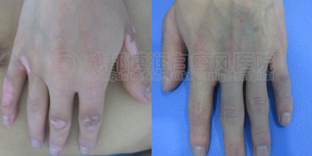 在当地的综合医院他拿了吃的药和一些跟酒精一样味道的黑色的外擦药,但用了一段时间并没什么效果。就听信别人的话使用了偏方治疗。结果那白斑越弄越严重 ,越用白癜风面积越大。张军失望极了,他认为这个病是医不好的,加上被白斑折磨的心情抑郁就说要放弃治疗。由于父亲张松的坚决,多方打听,经熟人介绍知道了成都博润白癜风医院能治好,就决定带着儿子去试试。