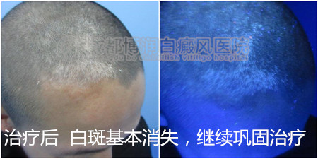 治疗后,白斑基本消失,继续药物巩固,并坚持抗复发治疗