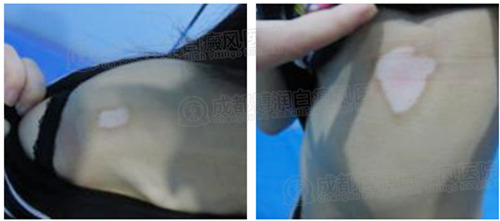 患者尚处于发育阶段,在肩部发现小块白斑,随后几个月,白斑在身体其他部位接连出现,在当地治疗均无效果,经其他患者介绍进入我院接受详细治疗。