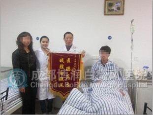 5月10日上午,一位母亲满脸笑容的将一面锦旗交到了成都博润白癜风医院主诊医生林永祥手中,锦旗中间的几个大字十分醒目:“医德高尚、战胜白癜风”。这位母亲告诉记者林永祥把她儿子3年多的白癜风治好了,今天特别定制了这面锦旗,以此来表达对林永祥主任的感谢之情,她说:“没有成都博润白癜风医院,没有林主任,就没有她儿子的今天。”