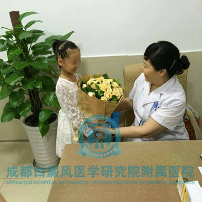 在经过一个月的治疗之后,晶晶脸上的白斑已经基本恢复,在此期间,童主任还嘱咐晶晶,一定要注意合理的饮食,保持良好的心态。晶晶为了表示感谢,利用平时一点一点积攒的零花钱给童主任买了一束鲜花,并亲自送到童主任办公室。童主任看着小晶晶顺利康复,也为她感到开心。