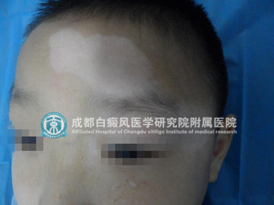 ▲病史:额头白斑2年。在当地医院治疗大半年左右,效果不佳,于今日来院就诊。