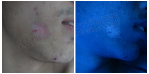 来院复诊wood灯显示面部白斑已经完全恢复