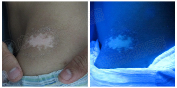 治疗中的腰部白斑wood灯显示恢复良好