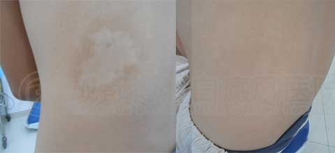 经过了全面的病因检测,了解了病因所在后,为他采用了我院首创的磁波塌渍疗法,主要采用中药外敷原理,将中药配方药材敷于患处,通过磁波热辐射及药理效应作用,药气通过毛孔渗入进入毛细血管,直接针对患处,并使白斑部位血管扩张,血液循环改善。治疗两个月,白斑边缘的颜色就开始加深,白斑面积也逐渐向里缩小,白斑区域内也逐渐有色素岛形成。四个月后,测结果显示他的黑色素生成情况完全正常。