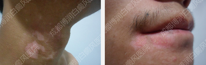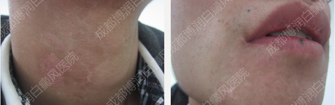 (图为汪洋治疗三个疗程后,白斑病情明显消退)