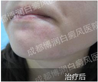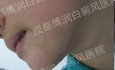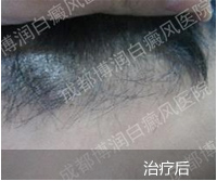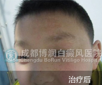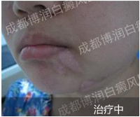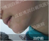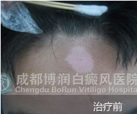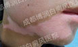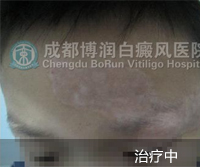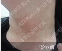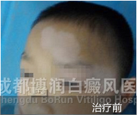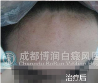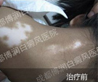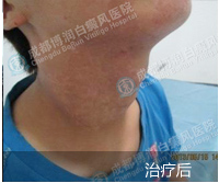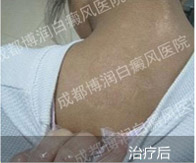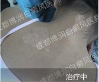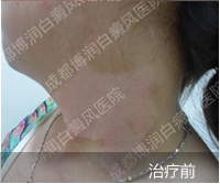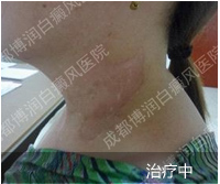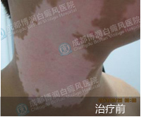1、伍德灯:右侧颈部、后枕部、背部、后颈部均有不同程度色素脱失
