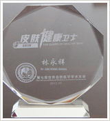 2013年10月,我院林永祥专家荣膺世界卫生组织、世界自然医学会联合总会颁发的国际"皮肤健康卫士"称号。