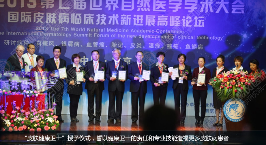 皮肤病领域有效治疗技术,例如黑色素细胞培植术、ZX-RI自血免疫双向调节疗法、蓝氧活性净血祛白等源自中国的皮肤病临床诊疗技术,得到了国内外权威专家的一致认可。来自世界自然医学会联合总会中南美洲联合会的王伟莉女士介绍说:"中国在皮肤医疗领域有了质的飞跃,很多技术、设备已经处于国际领先水平。"这些成就离不开一线皮肤病专家的努力,很多皮肤病专家穷尽一生都在研究如何有效治疗白癜风、银屑病、血管瘤、胎记等这些皮肤顽疾。为此,2013世界自然医学学术大会组委会特别设立"皮肤健康卫士"奖章,表彰这些做出突出贡献的医生。