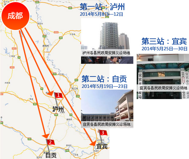 江阳区、龙马谭区、纳溪区(5月8日)-泸县(5月9日)-合江县(5月10日)—古蔺县(5月11日)