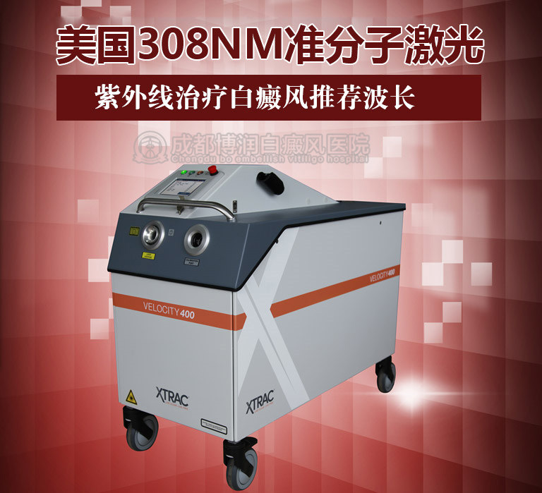 美国308nm集成了308nm XeCl准分子激光光源、计算机照射剂量精密控制和较新的液体光导传输(LLG)等多项技术,使皮肤酪氨酸酶的活性增加,黑素细胞合成的黑色能力加强。同时对表皮有免疫抑制作用。与传统的治疗方法相比疗程更短,见效更快。