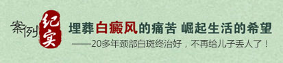 3岁的小男孩文文(化名)是一个活泼的孩子,年纪虽然不大,但是很有礼貌,很多人见了他都会喜欢上他。文文患上白癜风的时候,是在2012年的暑假,天气非常炎热,文文的姐姐发现文文脖子上有个白色的印子,一天天在扩散变大,姐姐就告知母亲,文文是不是得了什么病?后来家里人给文文买来了治癣的药来擦,可事与愿违,身上的白斑不仅没有擦好.....【详细】