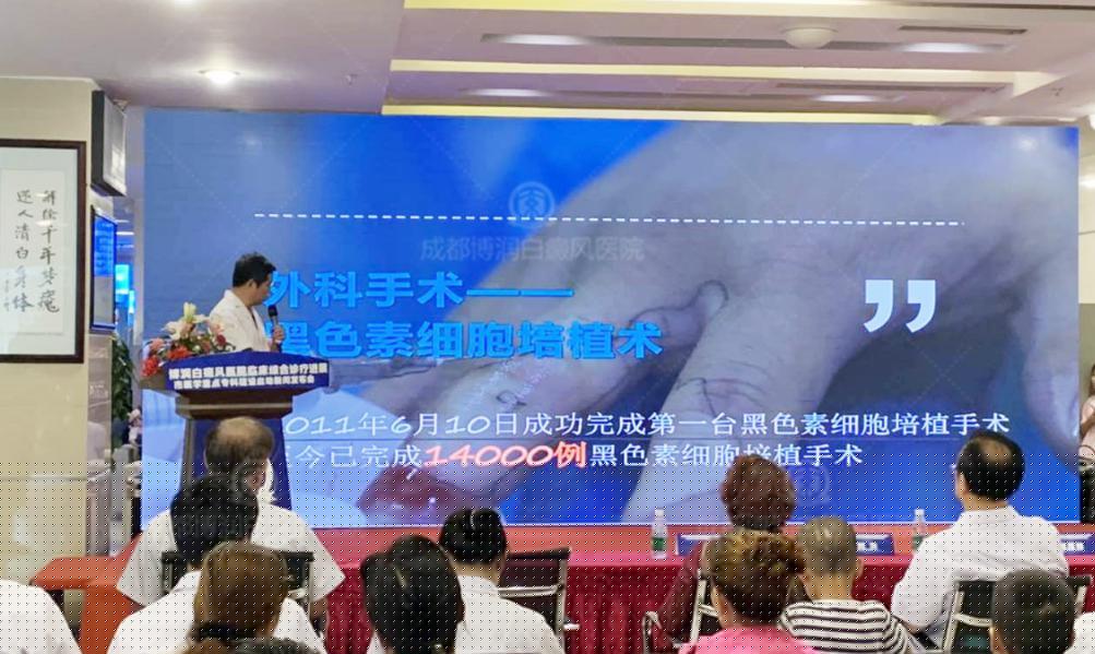 作为此次发布会主办方、四川地区“白癜风规范化诊疗临床”,成都博润白癜风医院集预防、医疗、康复、科研、教学、公益慈善于一体,将逐步升级为国际性、医生型、科研型的白癜风专科诊疗机构。建院至今,已累计治疗白癜风病患万余例,开展有数个临床科研课题,如“白癜风患者相关因素现况调查及不同治疗方法的疗效分析”、“毛囊外根鞘细胞混悬液(NCORSHFS)移植”项目、“白癜风遗传与精准医学研究”项目等,已拥有国际前沿水准的数十套系统化白癜风相关专业治疗设备。