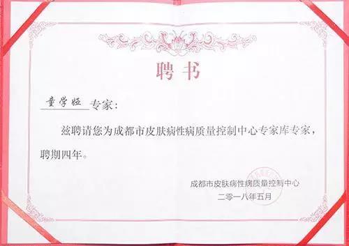 童学娅荣膺成都市皮肤病性病质量控制第二届医生库医生
