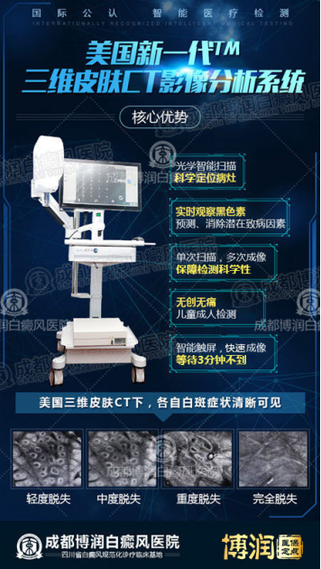 其中,成都博润白癜风医院吴刚玲老师从事皮肤性病临床工作多年,获得国家“皮肤影像中级能力认证”证书。能够独立运用皮肤镜、在体反射式共聚焦显微镜(皮肤CT)等设备,并且积累了大量的白癜风鉴别诊断经验,进一步提高白癜风精准检测、分析判断的能力。