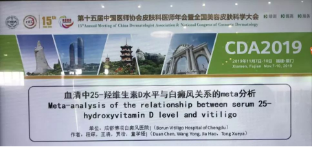 第十五届中国医师协会皮肤科医师年会《色素性及物理性皮肤病》共收录了全国11篇论文,其中成都博润临床科研课题《血清中25➖羟基维生素D水平与白癜风关系的meta分析》入选本次会议壁报专栏,荣登收录名单!
