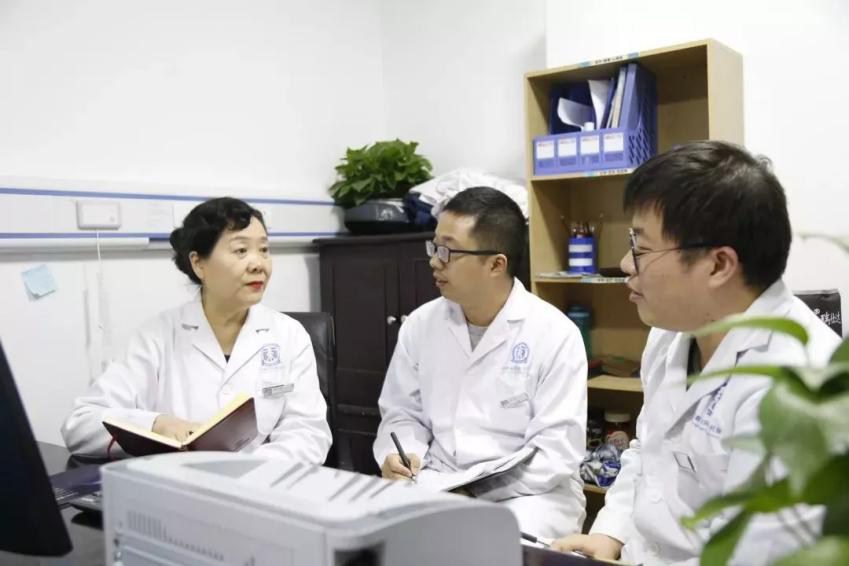 童学娅主任与白癜风临床研究生段琛、贾浩进行学术探讨
