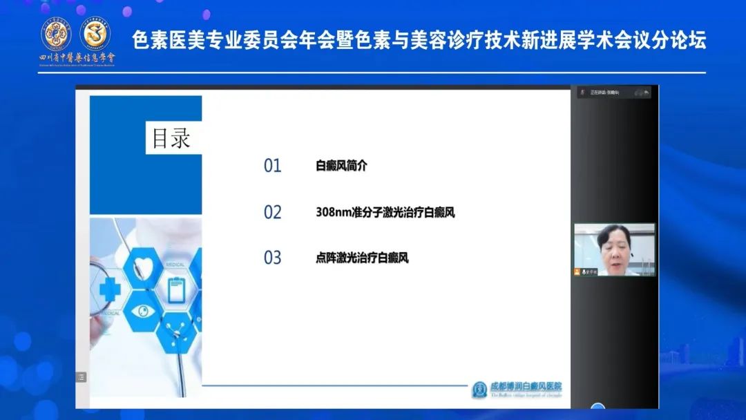 8月6日,第二届“人民健康”学术交流大会色素与美容诊疗技术新进展学术会议于线上召开。本次会议由四川省中医药信息学会主办,成都博润白癜风医院门诊主任童学娅受邀出席本次会议,并作发言。
