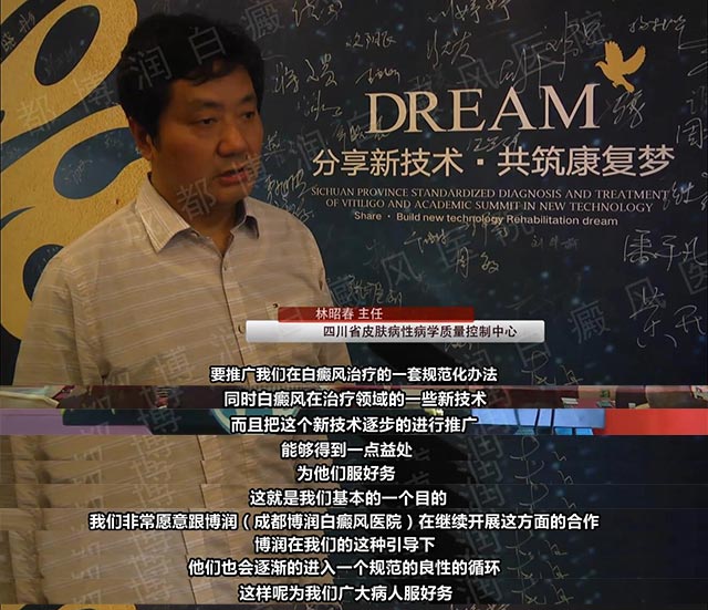林昭春主任的会议报告及其会场的分享,都表明了其对抗白癜风的决心以及努力,相信在我国及世界各国的医生学者的共同努力下,白癜风疾病定会离我们而去,“分享新技术,共筑康复梦”的伟大愿景也能早日实现。