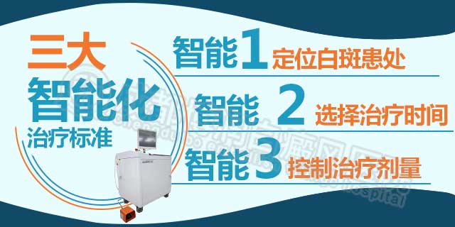 1、智能识别白斑患处:自动图像比色识别系统,通过患部影像比色识别技术,精准地捕捉白斑部位,能量集中、稳定,不伤害周围皮肤。