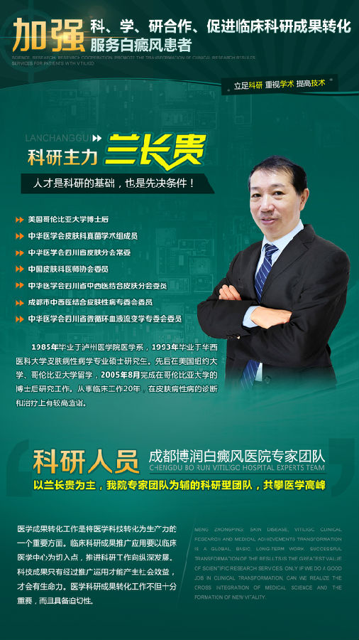 会议同时宣布于成都博润白癜风医院,设立以色素专业委员会为支撑的“白癜风实验研究”,以进一步提高白癜风疾病学的临床科学研究,促进白癜风诊疗技术规范化、正规化发展。