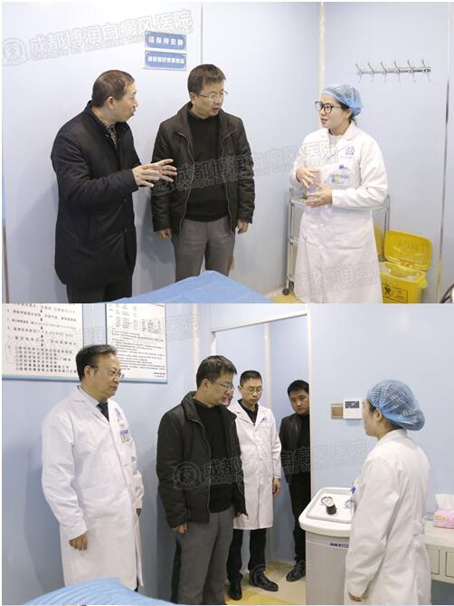 在领导和医生的陪同下,中国核工业416医院兰长贵等医生一行参观了医院的四大分诊,尤其是“美国308激光“、”智能308”、”311UVB窄谱”、”中药塌渍”、“表皮移植术”、”Recell分离术”等中西医诊疗技术、设备,获得了来院医生们的高度称赞。作为西南首家光疗,众人表示我院高标准的建设水平、先进的医疗设备、技术精湛的医生队伍、温馨的医疗服务,都一再彰显白癜风专业医院的实力。