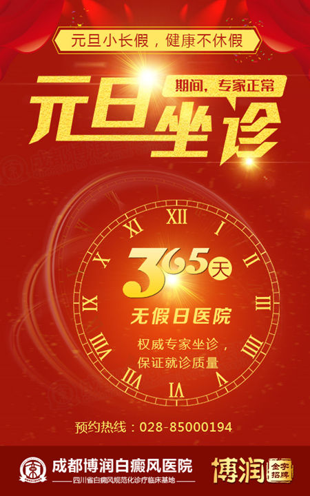 由于元旦假期期间为治疗高峰期,医生预约量较大,为避免因节日出现就诊拥堵,医生号难求的状况,我院提供24小时网络预约挂号就诊服务,以免因排队挂号给患者带来的诸多就诊不便,请广大患者及时提前网络咨询预约,或拨打热线电话028-8500194直接咨询预约。