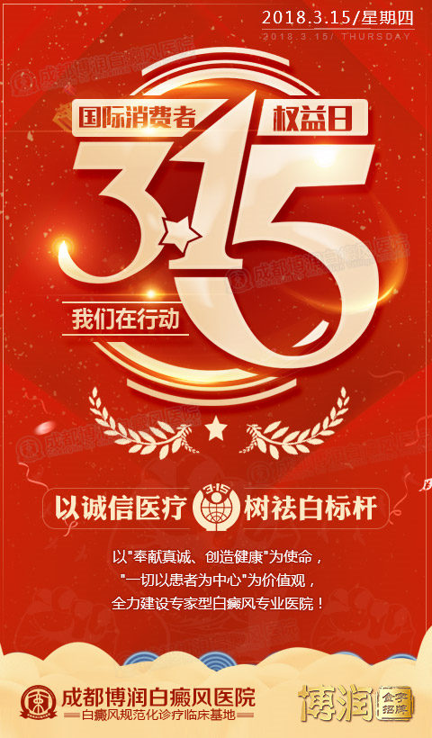 成都博润白癜风医院已将3·15融入每一天,每一位患者,每一个细节诊疗服务中,为患者提供较科学有效的治疗,帮助患者早日康复!