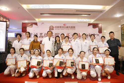 武侯竹园社区党委书记杨小勤、副书记曾艳、成都博润白癜风医院党支部书记、院长刘洪、护理部主任周光玉、门诊主任童学娅、护士长林雪春等亲临现场并担任评委。由医助组组长席娇主持。