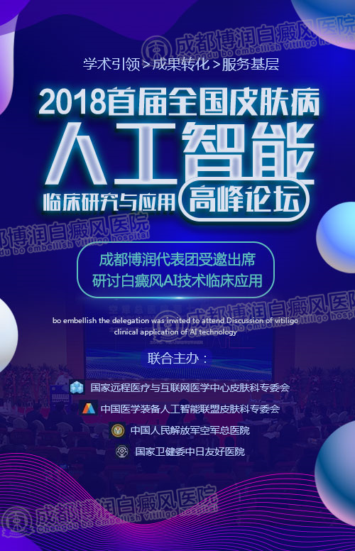 成都博润率先成立白癜风临床实验研究,专注开展白癜风疾病学的临床科学研究;随后成立白癜风大数据,以数据作为人工智能医学发展的基石.....促进白癜风诊疗高效率。