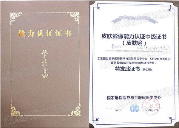我院吴刚玲获得皮肤影像能力进行中级考核证书
